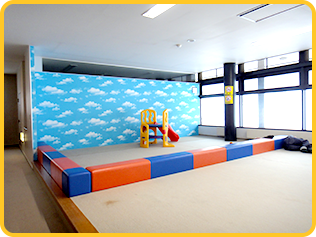 外で遊び疲れたら室内で遊びながら一休み。パパ&ママも靴を脱いでホッと一息できるスペースです。